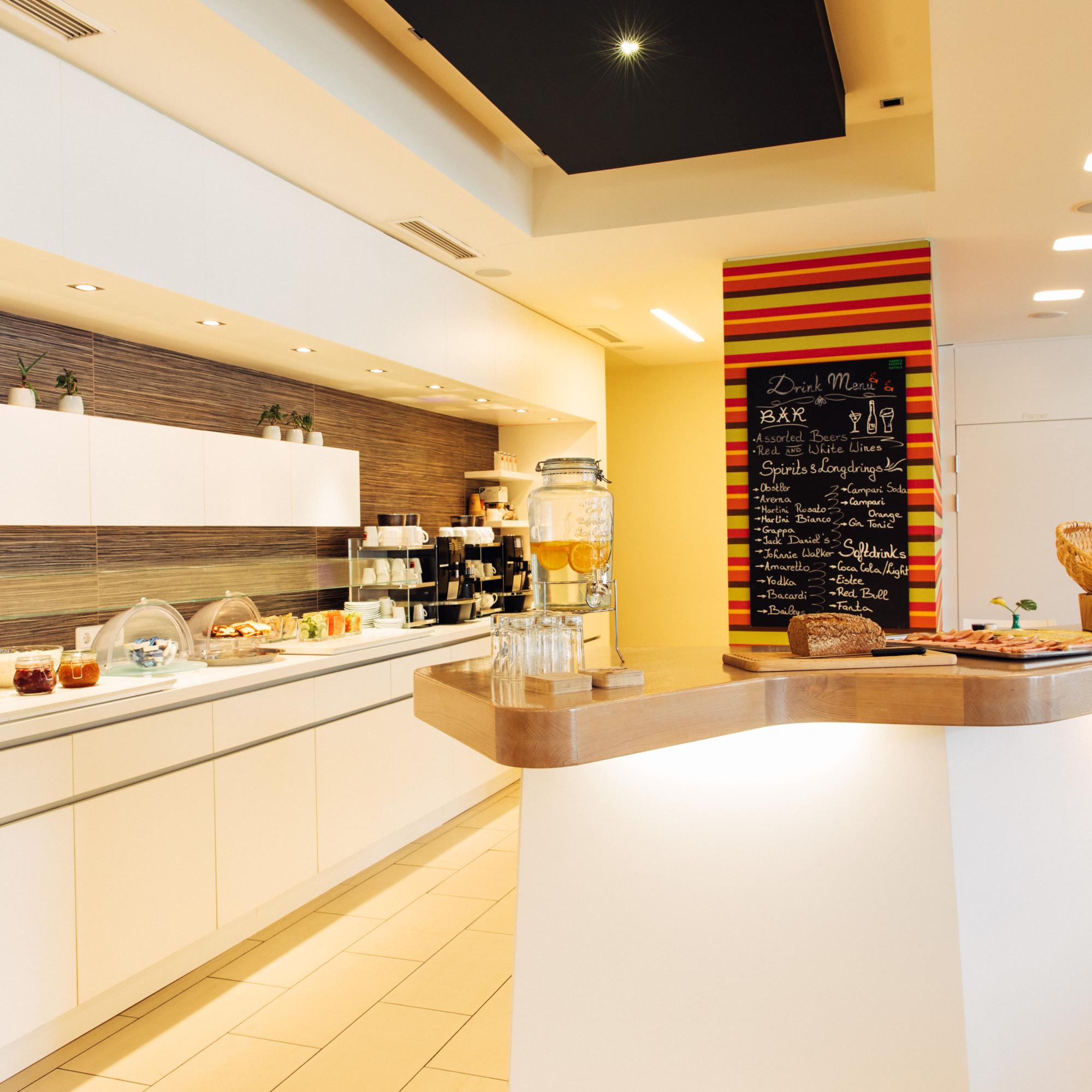 Bei harry’s home ist uns das Wohngefühl auf Reisen besonders wichtig. Deshalb liegt es uns am Herzen, dass auch Gäste sich bei uns wie Zuhause fühlen. Auch an die Bedürfnisse von Gruppenreisenden haben wir dabei gedacht: Neben großzügigen Einzel- und Doppelzimmern mit Twinbetten stehen auf Wunsch auch Studios und Apartments mit voll ausgestatteter Küchenzeile mit Kühlschrank, Herd und Mikrowelle zur Verfügung. Egal welche Kategorie, eines haben all unsere Zimmer gemein: sie bieten viel Platz und sind mit einem begehbaren Kleiderschrank, Flatscreen-TV sowie einer Klimaanlage ausgestattet. Großen Wert legen wir auf einen gesunden Start in den Tag: so viel wie möglich setzen wir bei unserem Frühstücksangebot auf Bio-Produkte und hausgemachte Speisen und Getränke, die „homemade“ sind und aus der Region kommen. In harry’s Wohnzimmer stehen eine Bar für Getränke und ausgewählte Snacks, gemütliche Lounge-Möbel, Bücher und Spiele zum Verleih zur Verfügung. Auf der Dachterrasse kannst du nach einem langen Tag die Füße hochlegen und die Aussicht genießen. Währenddessen toben sich die kleinsten Gäste im Kinderspielzimmer im Unterwasserdesign aus: dort finden sie neben Rutsche auch ein Bällebad, allerlei Spiele, Mal-Utensilien und vieles mehr. Dank service point mit Waschmaschine, Trockner und Co. muss im harry’s home niemand auf frisch gewaschene Wäsche, gebügelte Hemden oder einen Trockner verzichten. Zudem befindet sich hier auch ein Automat mit allerlei Dingen des täglichen Gebrauchs, kalte Getränke und etwas für den kleinen Hunger Zwischendurch.Zum Be- und Entladen kann der Bus direkt in unserer Einfahrt geparkt werden, Parkplätze stehen anschließend neben dem Hotel kostenfrei zur Verfügung.