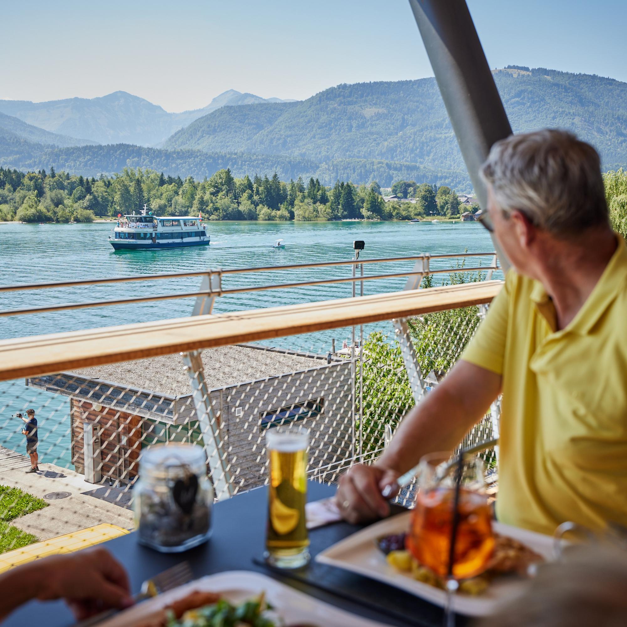 Küchenchef Mario Köstl legt bei der Kreation seiner Speisen großen Wert auf regionale Produkte. Der Fisch kommt frisch aus dem Wolfgangsee, gefangen von der Fischerei Höplinger, besten Käse von glücklichen Schafen liefert das Seegut Eisl, und wenn das Eis von Fischer DAS Eis in Bio-Qualität serviert wird, dann zerschmilzt das schlechte Gewissen beim Schlemmen auf der Seeterrasse zu reinem Wohlbefinden.